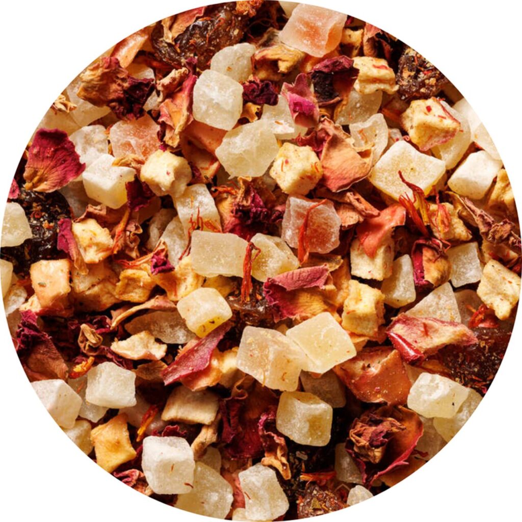 Słodycz Orientu to herbata, która pozwala na chwilę relaksu w iście egzotycznym stylu. Soczyste rodzynki, płatki róży oraz akcenty kwiatu krokosza spowijają napar nutą subtelności i elegancji. To doskonały wybór dla osób pragnących odkrywać nowe smaki w doskonale zbalansowanej, owocowej formie.