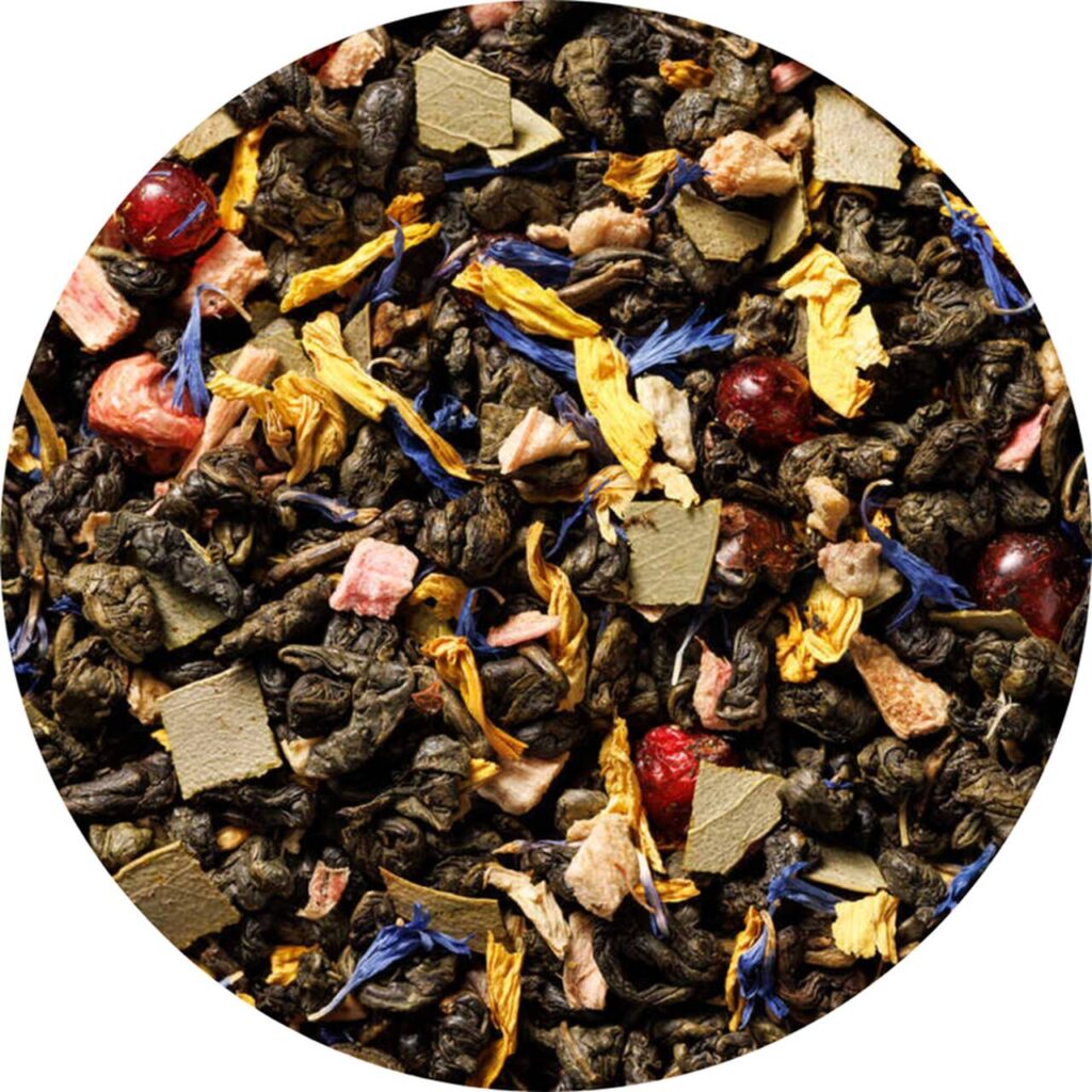 Melancholia to herbata stworzona dla najbardziej wymagających podniebień. Baza z zielonej herbaty liściastej została tu wzbogacona o rzadko spotykane w mieszankach liście eukaliptusa, które nadają naparowi unikalnego charakteru. Całość dopełniają kwiaty słonecznika i bławatka, tworząc wizualny i smakowy majstersztyk.