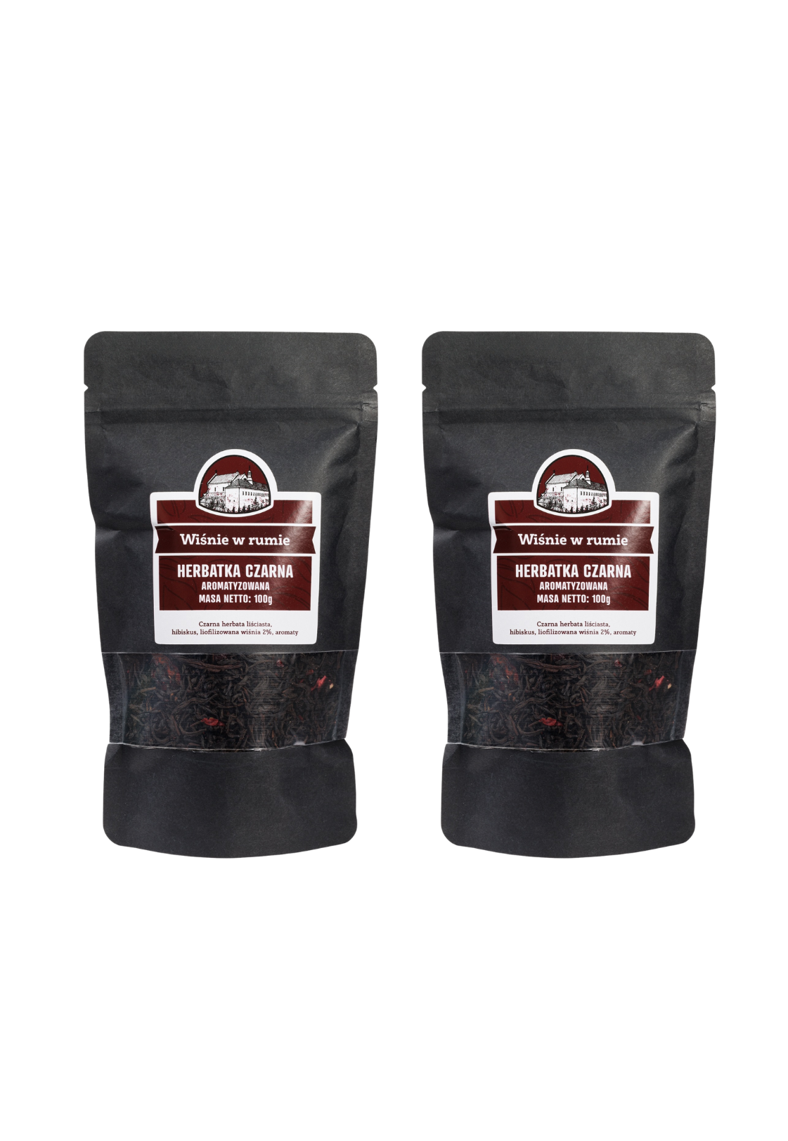 Zestaw 2 opakowań herbatki czarnej aromatyzowanej Wiśnie w Rumie 100g. Wysyłka 24h (w dni robocze).