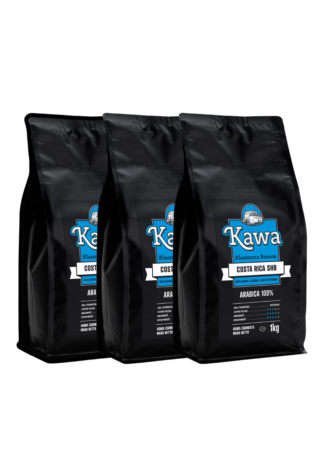 Zestaw 3 opakowań kawy Costa Rica SHB 1kg. Świeżo palona, wysyłka 24h (w dni robocze).