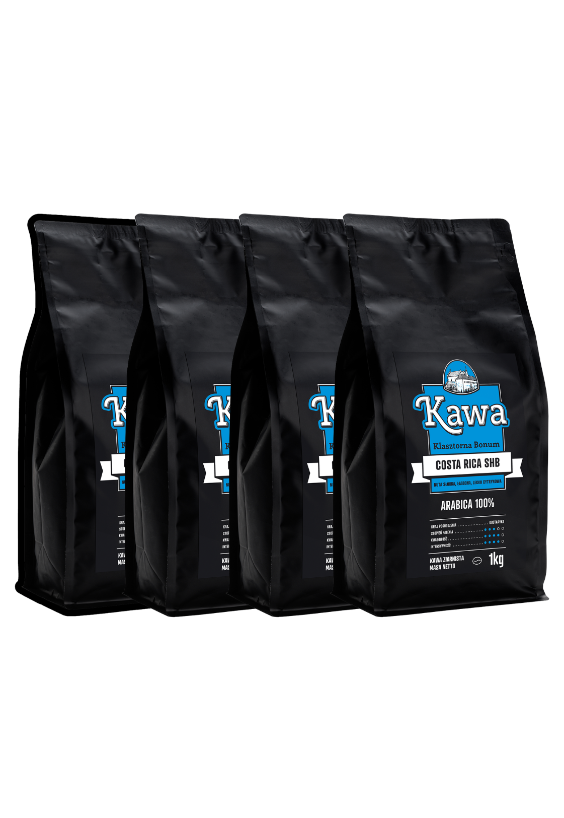 Zestaw 4 opakowań kawy Costa Rica SHB 1kg. Świeżo palona, wysyłka 24h (w dni robocze).