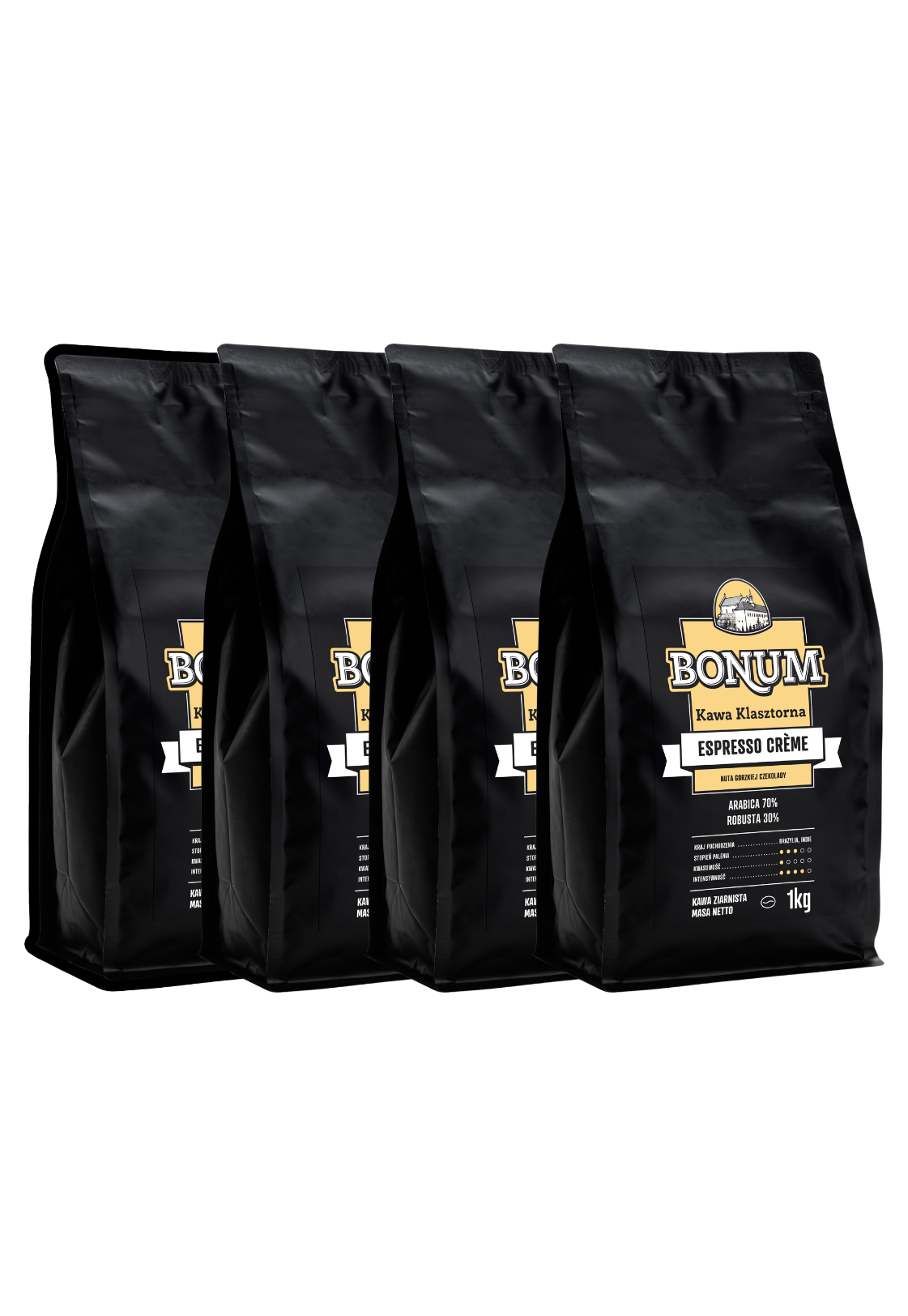 Zestaw 4 opakowań kawy Espresso Crème 1kg. Świeżo palona, wysyłka 24h (w dni robocze).